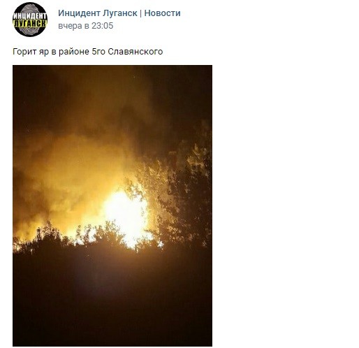 Накануне, 1 сентября 2021 года, во временно оккупированном Луганске в районе 5-го Славянского в яре произошел пожар, который виден был даже в центре города, а луганчане сообщали о сильном задымлении и запахе горящих покрышек.