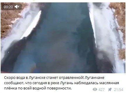 «Скоро вода в Луганске станет отравленной! Луганчане сообщают, что сегодня в реке Лугань наблюдалась маслянная плёнка по всей водной поверхности».