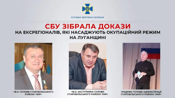 Йдеться про «виконуючого обов'язки голови», «виконуючого обов'язки заступника голови», а також про «радника глави Адміністрації Старобільського району лнр».