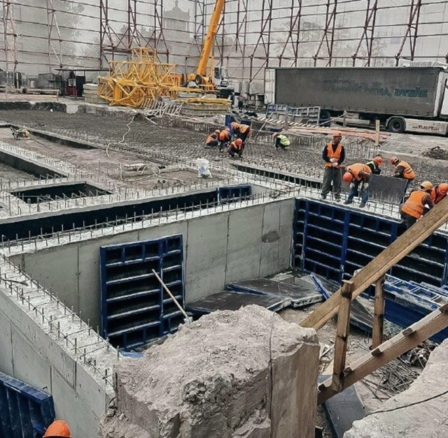 Окупанти розпочали будівництво на місці, де раніше стояв Маріупольський драматичний театр. Говорять, що команда будівельників працює без вихідних, аби завершити роботу якнайшвидше.