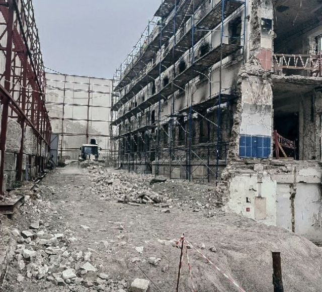 Загарбникам знадобився майже рік, щоб розчистити руїни та розібрати залишки будівлі. Від попереднього театру залишилась тільки одна стіна. В кінці серпня вони анонсували початок спорудження нової будівль.