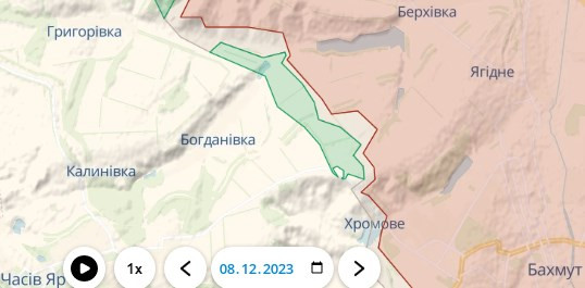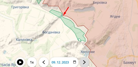 Однак, відомий військовий аналітик та укладач фронтових мап «DeepState» зазначив, що не всі атаки окупантів були успішно відбиті. Зокрема, він надав скриншоти своєї карти за восьме та дев’яте грудня, де червоною стрілкою позначено територію в Богданівці, на якій ворог встиг закріпитися.