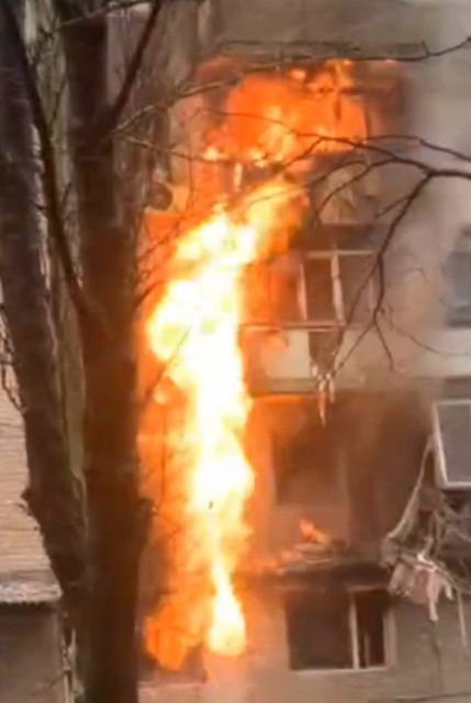 Так званий «мер міста» Олексій Кулемзін заявив, що в результаті обстрілу в Київському районі міста постраждала школа №19 і загорівся багатоповерховий будинок.