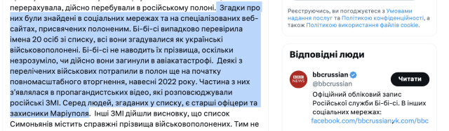 Наприклад, із 20 випадково перевірених імен усі були пов'язані з українськими військовополоненими, причому серед них є як старші офіцери, так і захисники Маріуполя, що потрапили в полон на початку війни.