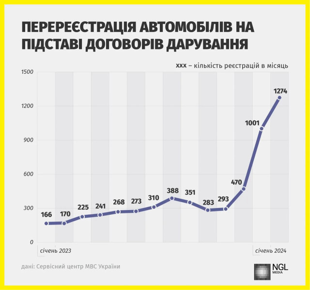 За даними МВС, в Україні за останній рік значно зросла кількість перереєстрації автомобілів на жінок через договори дарування.