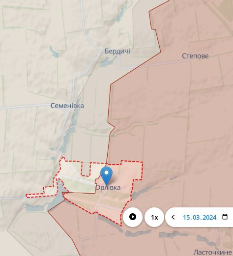Це підтвердив авторитетний вітчизняний Укладач фронтових карт та український військовий експерт «DeepState», зазначив що ворог просунувся в Бердичах і Орлівці.