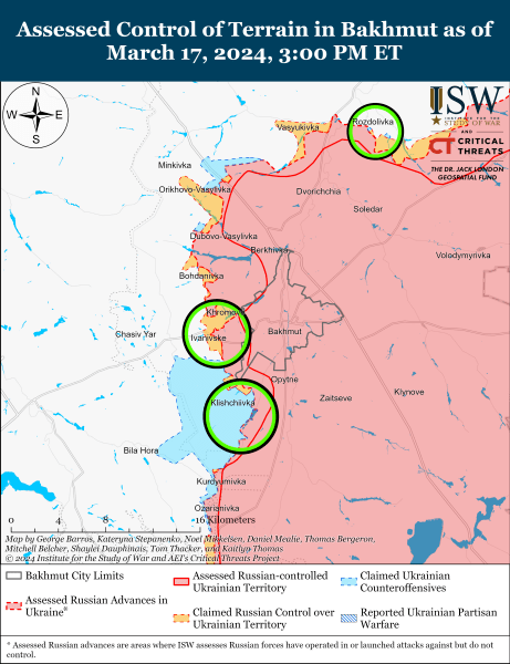 Аналітики Інституту вивчення війни (ISW) у свіжому звіті за 17 березня повідомили, що російські окупанти безуспішно атакували на Сіверському напрямку.