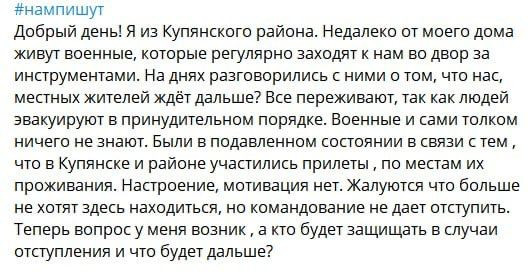 Журналісти помітили, що в останні кілька днів в соцмережах все частіше з'являються коментарі нібито стурбованих ситуацією у Куп'янську громадян.