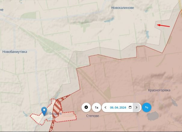 В якості підтвердження, військовий фахівець оприлюднив скриншоти зі своїх карт за 5 та 6 квітня, на останній він червоно-коричневим штрихуванням і пунктиром позначив втрачену територію нашими бійцями.