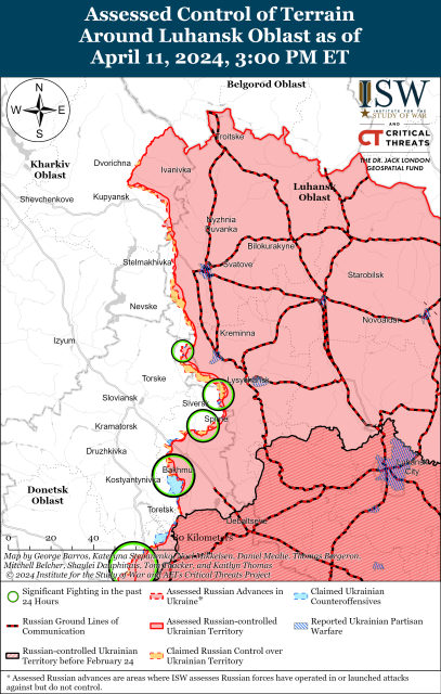 У повідомленні аналітичного центру йдеться, що на тлі тривалих бойових зіткнень 11 квітня, окупанти змогли просунутися та закріпитися поблизу населеного пункту Кремінна, пише видання «Остров».