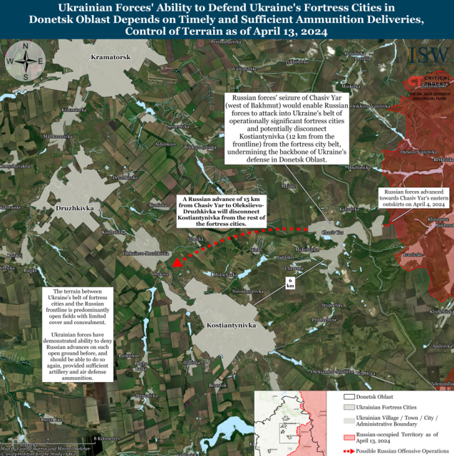 За даними ISW, Росія прагне захопити Часів Яр, що може дозволити їм розпочати наступальні операції проти міст Слов’янськ, Краматорськ, Дружківка та Костянтинівка, ключових елементів українського оборонного поясу.