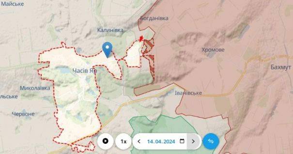 Він опублікував скріншоти за 13 та 14 квітня, на останній червоно-коричневим штрихуванням і пунктиром позначив втрачені території бійцями ЗСУ, на яких вже встигли закріпиться окупанти.