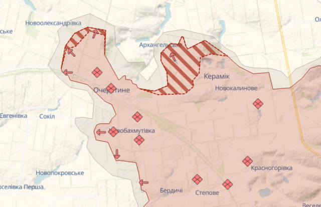 Після вчорашньої новини про захоплення російськими військами сіл Керамік та Новокалинове Покровського району Донецької області, противник просунувся в бік населеного пункту Архангельське.