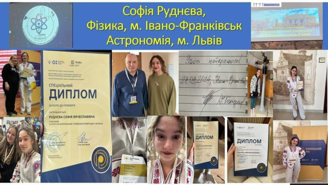 Софія Руднєва, також з 11 класу, подолала два конкурси: вона вразила на олімпіаді з фізики в Івано-Франківську та отримала нагороду «За волю до перемоги», а також довела своє майстерство на змаганнях з астрономії у Львові, де її відзначили як «Астромандрівницю».