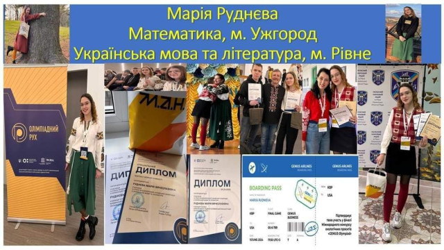 Марія Руднєва з 11 класу показала вражаючі результати на олімпіаді з математики в Ужгороді і отримала нагороду «Форпост мовної стійкості» на олімпіаді з української мови та літератури в Рівному.