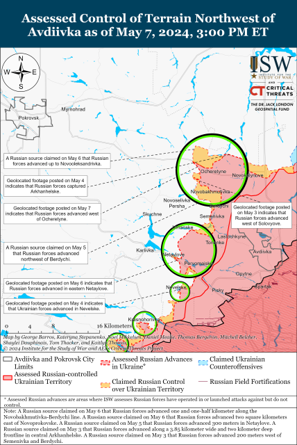 Згідно з інформацією, що надійшла від аналітиків Інституту вивчення війни (ISW), російські війська продовжують активні дії в районі Очеретиного.