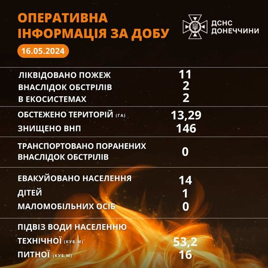 З початку 2024 року на Донеччині виникла 1 351 пожежа, з них 238 стались через влучення вибухонебезпечних предметів.