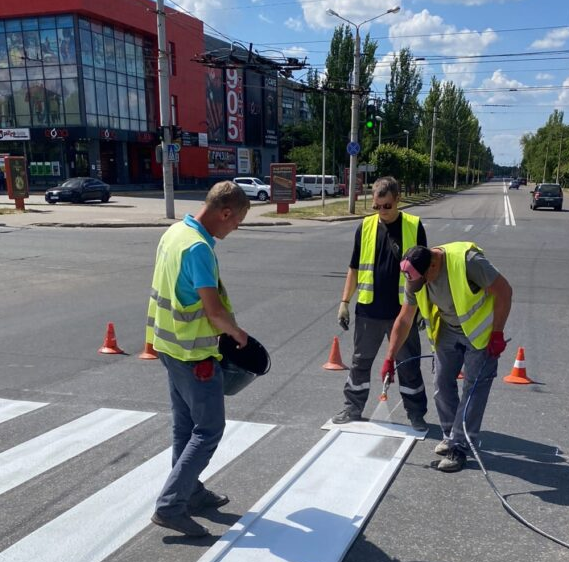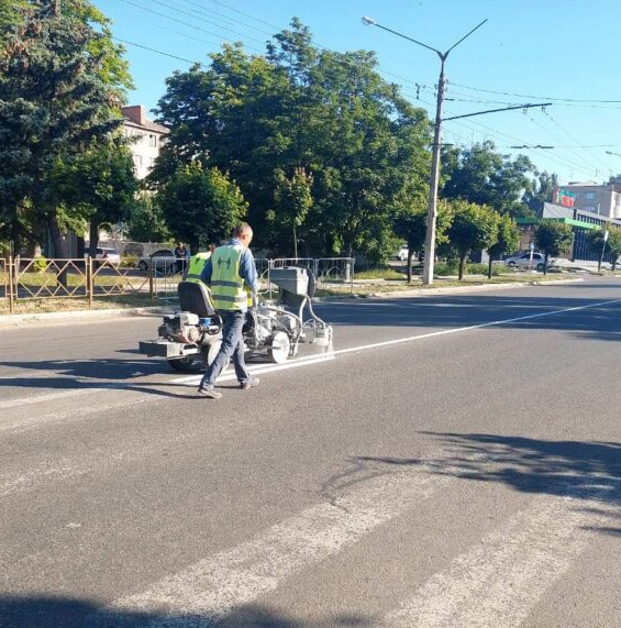 "Проводимо роботи по розмітці по вул. Ювілейна. На пішохідних переходах обов'язково застосовуємо склокульки", — уточнюють комунальники.
