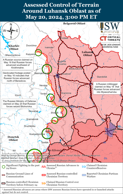 Інститут вивчення війни (ISW) повідомляє про активізацію російських наступальних дій на Харківщині та Донеччині. Важливі бойові дії відбуваються у Вовчанську та поблизу Часового Яру та Авдіївки.