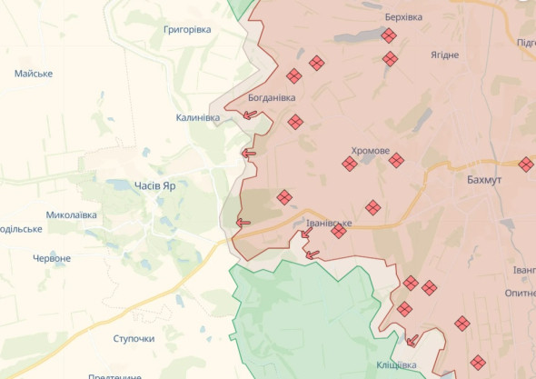 Оприлюднена карта говорить про те, що противник активно наближається до кордону Часового Яру.