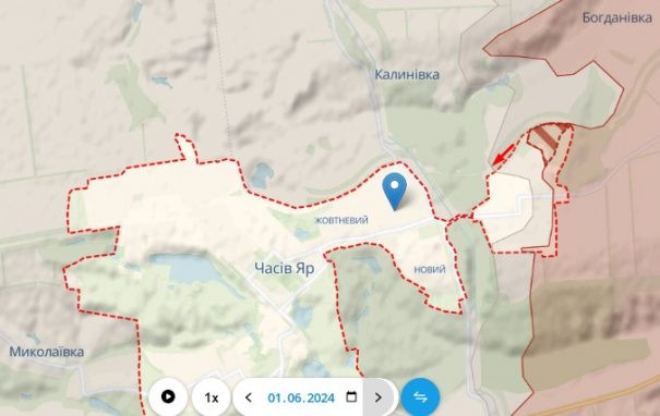 Військовий експерт «DeepState» також підтвердив просування загарбників у Часовому Яру, оприлюднивши актуальну карту, на якій червоно-коричневими штрихуванням і пунктиром позначена втрачена територія.