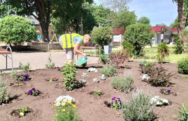 Крім того, триває санітарне скошування трави на Кільцевій та підживлють квіти на клумбах.