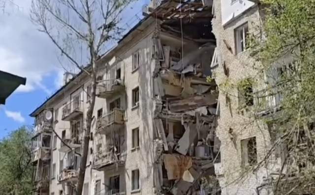 Також повідомляється про обвалення під'їзду одного з багатоквартирних будинків, по якому влучила ракета.