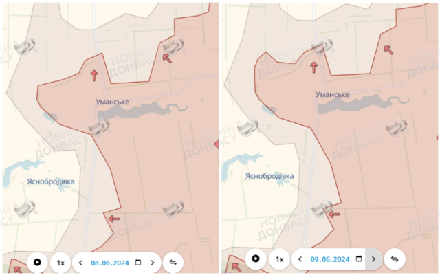 За даними аналітиків, російські військові зробили прорив у районі сіл Уманське та Новоолександрівка. Уманське є частиною Очеретинської селищної громади та має населення близько 176 осіб, тоді як Новоолександрівка, що входить до складу Покровської міської громади, має населення 138 людей.