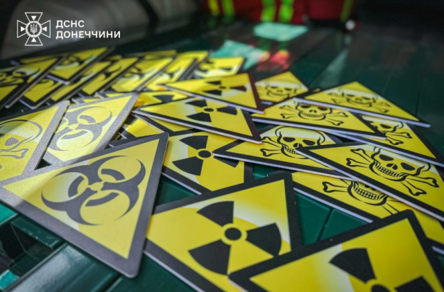 Зазначається, що благодійна організація надала співробітникам Головного управління три комплекти попереджувальних знаків про радіаційну, хімічну та біологічну небезпеку.