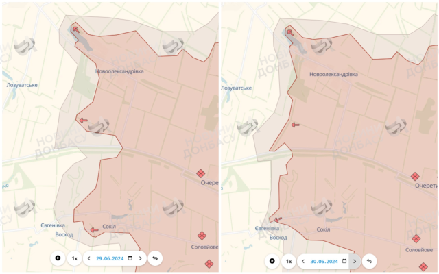 За даними військового експерта аналітичної групи DeepState, ще 30 червня було зафіксовано активне просування ворожих сил в напрямку Новоолександрівки.