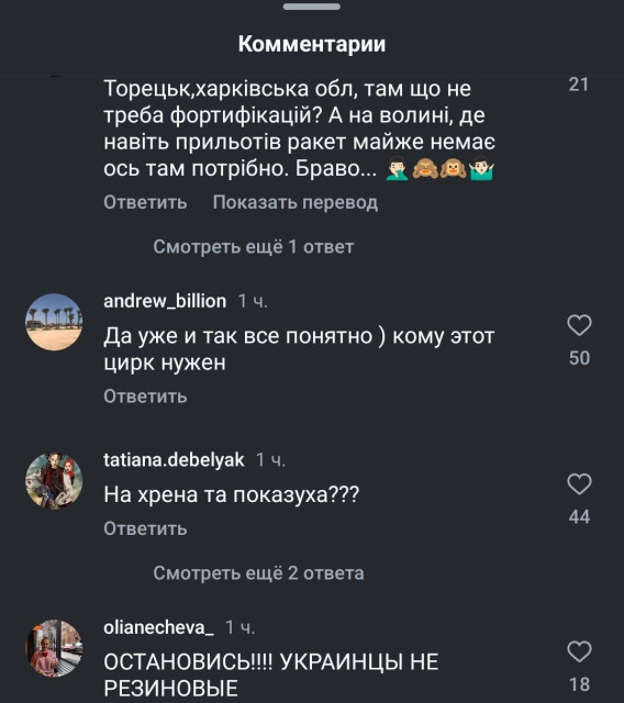 Коментатори в соціальних мережах пишуть: «В районі Покровська начніть щось робити, навіщо ті клумби там зараз?» та «Волинь серйозно? А Донецька область, а Харків, а Сумська? Ще в Львівській області у кордону з Польщею почніть будувати».