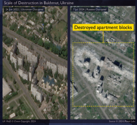 Британська розвідка показала масштаби руйнувань тимчасово захопленого Бахмута на Донеччині