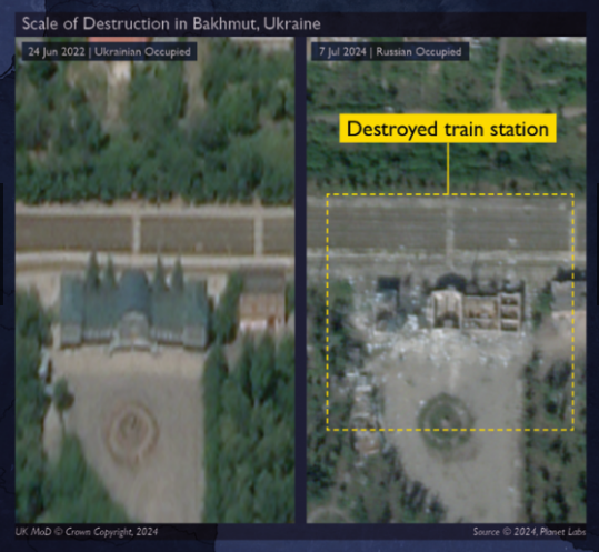 Розвідка оприлюднила супутникові зображення, на яких зафіксовані серйозні руйнування, включаючи стадіон, школу і залізничний вокзал в Бахмуті.