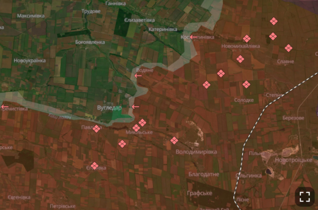 Згідно з інформацією, противник окупував Водяне та просунувся в бік Гродівки.На сайті аналітичної групи також оновлена карта бойових дій, де відображено захоплення населеного пункту.