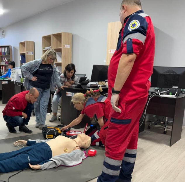 На тренінгу виступили психолог ГУ ДСНС у Луганській області Олексій Вискубенко та команда навчально-тренувального центру КНП ЛОР «Луганський обласний центр екстреної медичної допомоги та медицини катастроф».