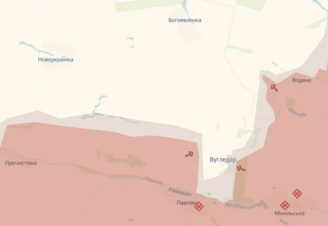 За його словами, бої тривають в центрі міста, а на флангах зупинити просування противника не вдалося. Загарбники продовжують наступ з Пречистівки та Водяного на Богоявленку, яка знаходиться всього в 1,5 км.Мирошников зазначає, що ворожа армія прагне не тільки оволодіти Богоявленкою, а й звужує фланги навколо самого Вугледара.