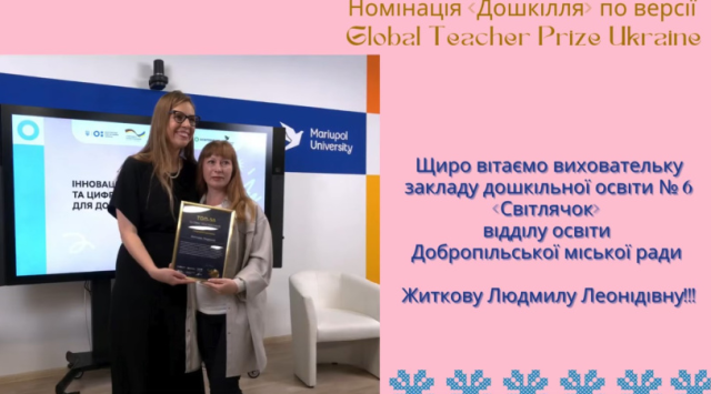 Вихователька з Добропільської громади Людмила Житкова вийшла у фінал престижної премії Global Teacher Prize Ukraine у номінації «Дошкілля».