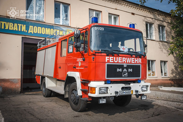 Головне управління ДСНС України у Донецькій області повідомляє, що рятувальники у Краматорську отримали благодійну допомогу від «Deutsch Ukrainische Gesellschaft Rhein Neckar e. V» пожежний автомобіль MAN та захисний одяг для пожежників.