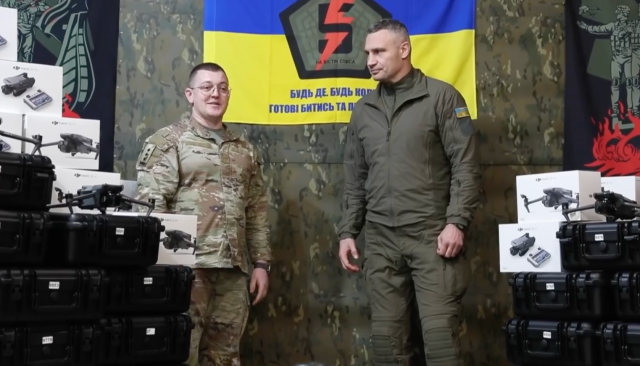 — 5-й окремій штурмовій бригаді Кличко відвіз 283 дрони Mavic, призначених як для денного, так і для нічного використання, а також один ударний дрон Vampire.