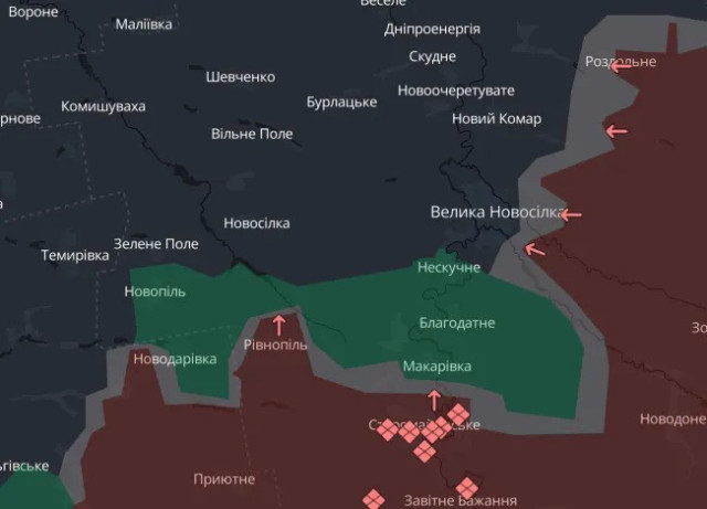 Як повідомляють аналітики DeepState, ворог досяг часткових успіхів у шести населених пунктах, зокрема в районах Дальнього, Костянтинопольського, Роздольного, Петрівки та Курахового.