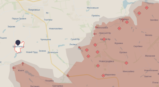 На Покровському напрямку ворог посилює свої позиції, маючи намір захопити селище Шевченко, розташоване на південь від Покровська.