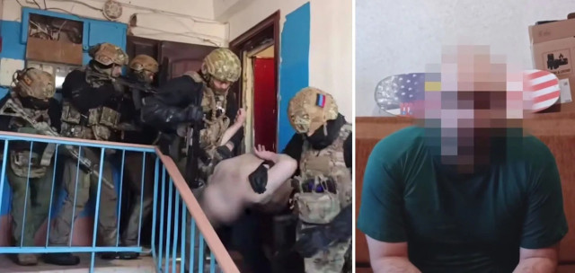 Пізніше у своєму сюжеті російське ТБ показало момент затримання чоловіка, якого звинуватили в «теракті». На кадрах сумнівного характеру затриманий спочатку напівголий, а в подальших сценах його вже вдягнуто в зелену футболку та посаджено на диван, поруч із яким умисно помістили дитячий скейтборд із символікою США та України.