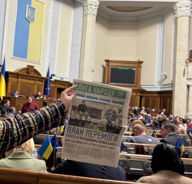 Вона заявила, що замість забезпечення Збройних сил України необхідним обладнанням, влада роздає на фронті газети з так званим «планом перемоги».