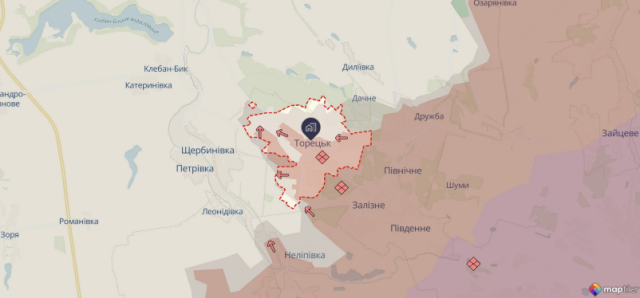 Раніше, в аналітичному пабліку «DeepState» інформували, що загарбники домоглися успіхів на центральній, північній та західній частинах Торецька, а також практично захопили мікрорайон «Забалка».