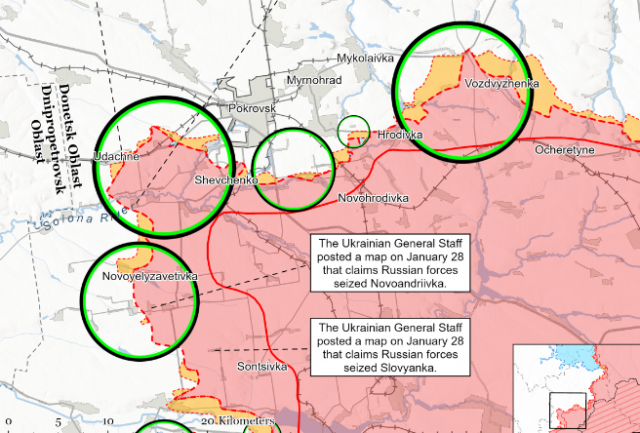 Актуальні геолокаційні знімки, оприлюднені 27 та 28 січня, говорять про активність наших захисників у південно-східній частині селища Котлине та в районі на південь від села Звірове.