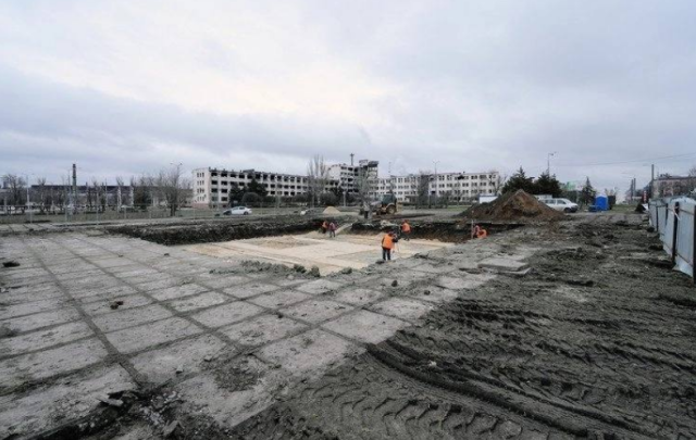В даний час на будівельному майданчику зробили демонтаж старих плит та почалося облаштування фундаменту. Територія огороджена парканом.