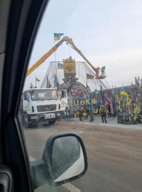 Стелу на в'їзді в Донецьку область почали накривати антидроновою сіткою