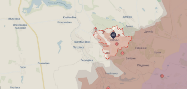 Аналітики «DeepState» також відзначають, що під контролем противника майже весь центр Торецька, проте бої тривають на його північних і західних околицях, включаючи мікрорайон «Забалка».