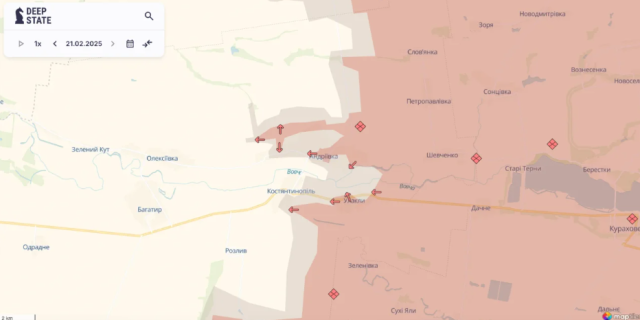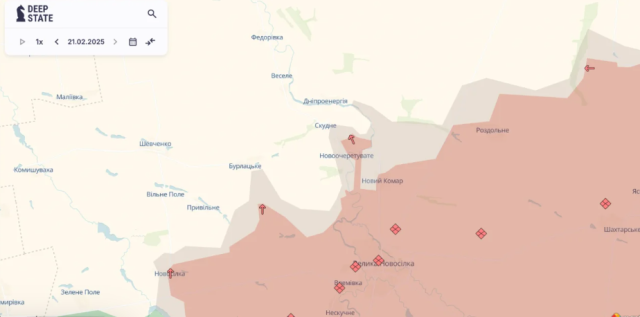 Про це в ніч, на 22 лютого, повідомили в аналітичному пабліку «DeepState».