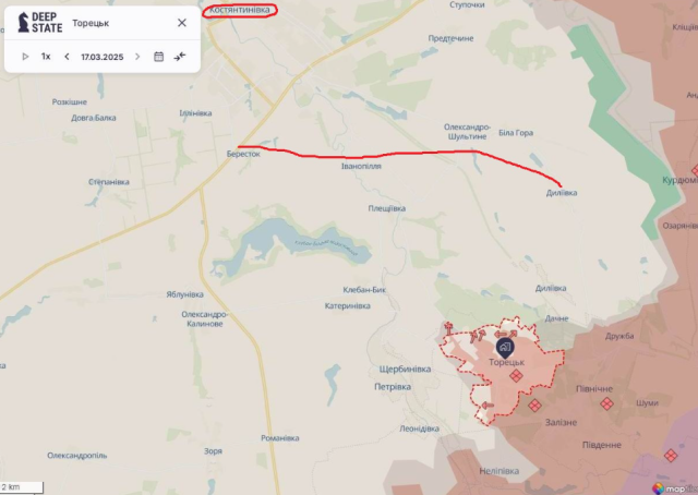 Журналіст додав, що обмежені контратаки за останні два тижні дозволили утримати частину міста та виграти дорогоцінний час. Однак стратегічна мета окупантів на цьому напрямку – вийти на рубежі Диліївка, Олександро-Шультине, Іванопілля та Бересток, що фактично означає наближення до передмість Костянтинівки.